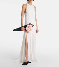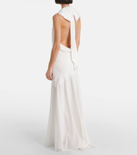 A mainstay at London Fashion Week, Simone Rocha's artful aesthetic is a subversive take on romance and femininity. Made with a touch of silk, this gown is the perfect choice for special occasions and beyond. This halterneck style is completed with a side slit and a captivating bow detail at the back. Product Details - Material: 73% acetate, 27% silk - Care instructions: dry clean - Made in Portugal - Designer color name: Ivory - Item color: ivory - Lining: 100% viscose - Item number: P01018056 Size & Fit - Fits large to size - we recommend trying one size smaller - Sheer - Fitted - Non-stretchy fabric - The model seen in the picture is 178cm-5'10" and wearing a size UK 8