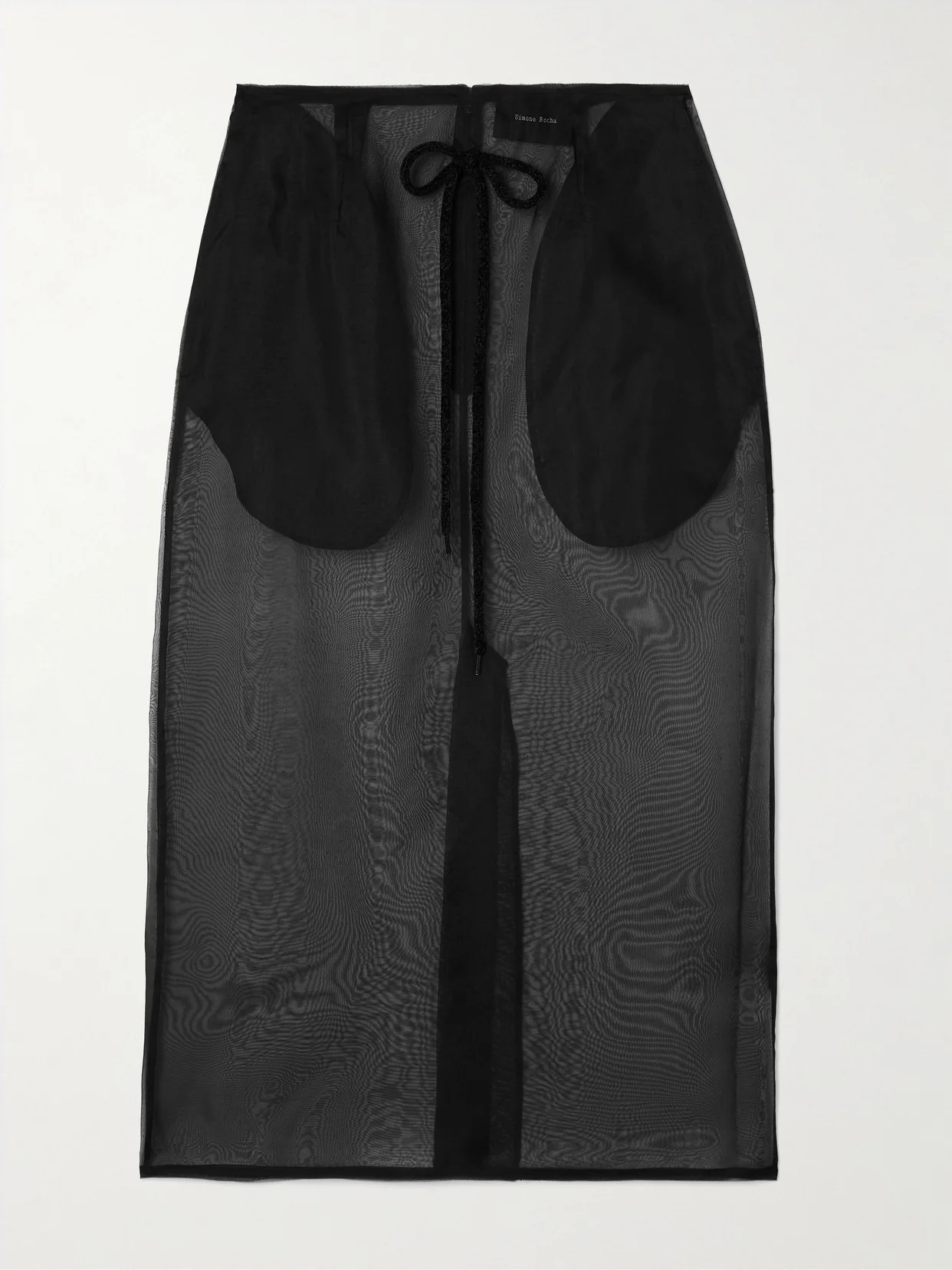 Simone Rocha's collections balance lightness with rebellion. This midi skirt is made from sheer silk-organza with visible seams for a deconstructed effect. We love the timeless pencil shape and signature bow detailing.