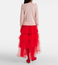 A mainstay at London Fashion Week, Simone Rocha's artful aesthetic is a subversive take on romance. Knitted from a fine wool and silk blend, this classic cardigan comes with satin bows and long ribbons at the shoulders. Product Details - Material: 75% wool (merino wool), 25% silk - Care instructions: dry clean - Made in Portugal - Designer color name: Pale Pink - Item color: pink - Material II: 100% polyester - Cuff: ribbed - Closure: zipped front - Hem: ribbed - Item number: P01112215 Size & Fit - True to size - Cinched waist - Stretchy fabric - Falls to the hip - The model seen in the picture is 178cm-5'10" and wearing a size XS