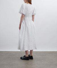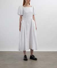 DETAILS Cotton poplin dress Slim fit Midi length Square neckline Short puff-sleeves Fitted waist Exaggerated hip detailing Full skirt Zip closure SIZE & FIT Model is 175cm/5'9"; Chest: 77cm; Waist: 57cm; Hip: 87cm and wears a size 8 COMPOSITION & CARE 100% Cotton Trim: 100% Nylon Lining: 100% Cotton Dry clean