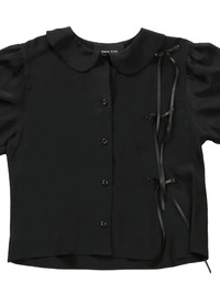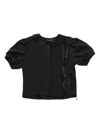 bow-detail puff-sleeves shirt Highlights - Black - Peter pan collar - Short sleeves - Button fastening - Bow detailing - Short puff sleeves Imported Composition Acetate 100%, Silk 100% Washing instructions Read Manufacturer Guidelines