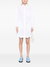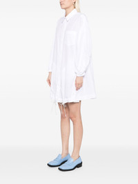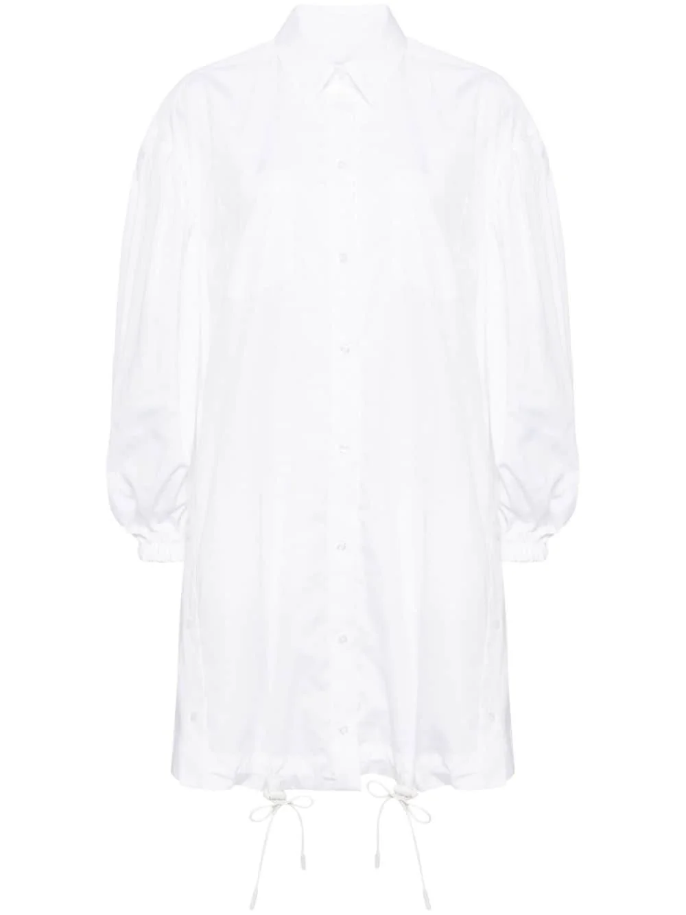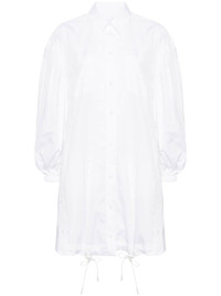 button placket trapeze shirt dress Highlights - White - Cotton - Poplin texture - Front button fastening - Puff sleeves - Long sleeves - Side button placket detail - Adjustable toggles at hem Imported Composition Cotton 100% SIZE & FIT Model measurements Height 5 ft 9 in(1.76 m) Bust/Chest 31.1 in(79 cm) Hips 35.03 in(89 cm) Waist 24.4 in(62 cm) FittingInformation Designed to be unstructured, offering a loose fit throughout Made from a midweight non-stretch fabric