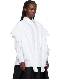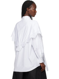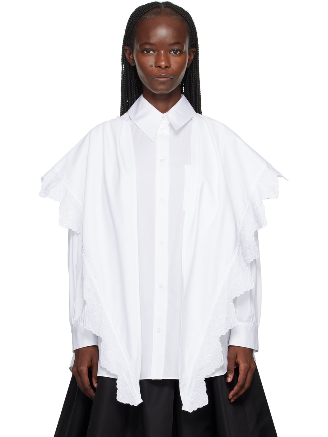 Cotton poplin shirt. Scalloped broderie anglaise trim at integrated shawl-style overlay. · Layered construction · Pointed collar · Button closure · Patch pocket · Shirttail hem · Puff sleeves · Two-button barrel cuffs · Box pleat at back yoke Supplier color: White/White