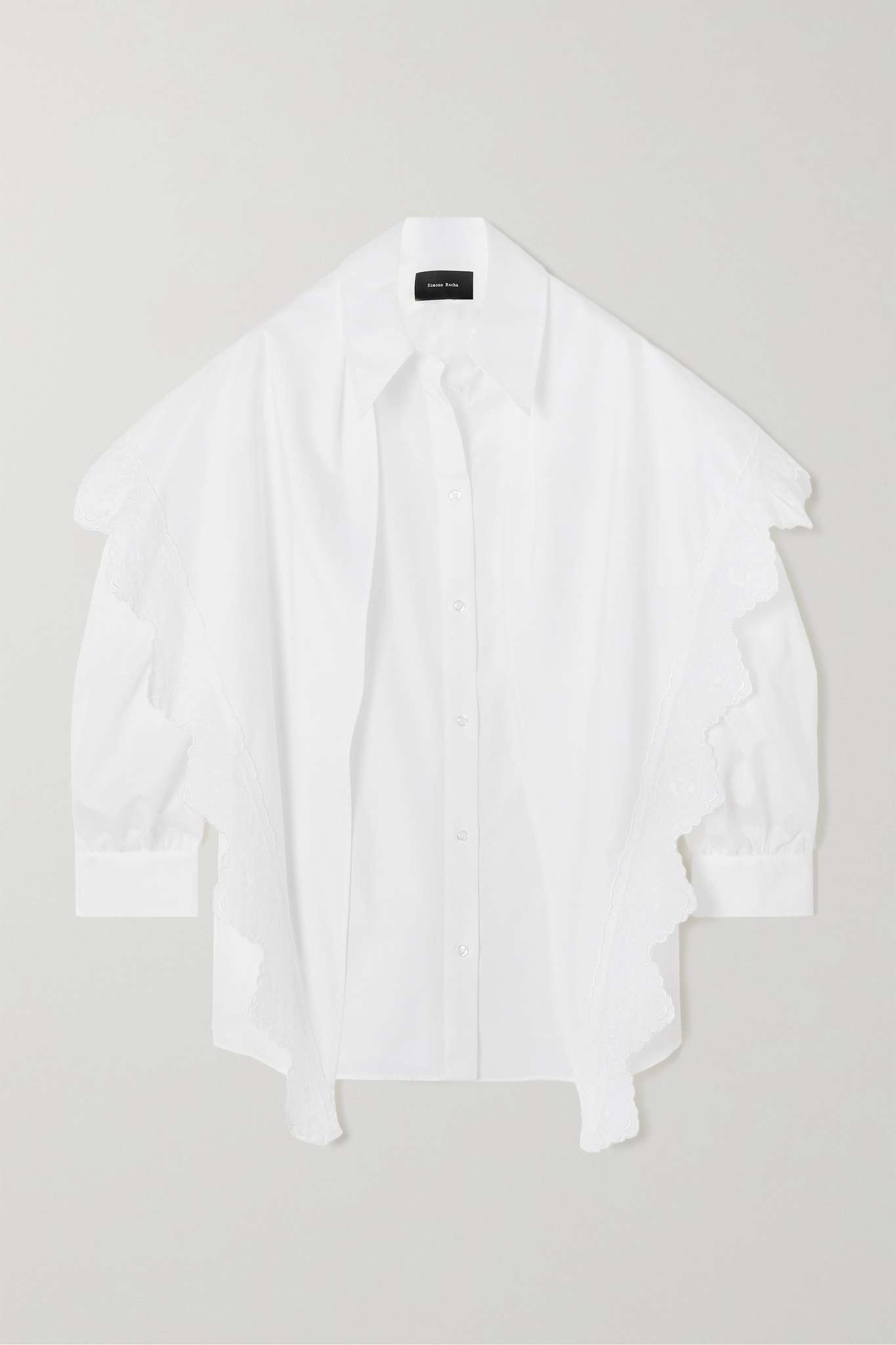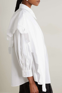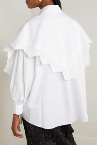 EDITORS'NOTES Just one look at this shirt is enough to tell it's by Simone Rocha. Cut from crisp cotton-poplin, it has a shawl-like overlay evocative of the Victorian era and bracelet sleeves. Zoom in to appreciate the intricate embroidery and neatly scalloped edges. SIZE & FIT - Fits true to size, take your normal size - Designed for a boxy fit, cut to be worn loose - Mid-weight, non-stretchy fabric - Model is 180cm/ 5’11” and is wearing a UK 8 DETAILS & CARE - White cotton-poplin - Button fastenings through front - 100% cotton - Machine wash