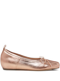 pleated toe ballerina shoes Highlights - Rose gold - Calf leather - Pleated edge - Bow detailing - Pull-tab at the heel - Flat sole Imported Composition Lining: Calf Leather 100% Sole: Calf Leather 100% Outer: Lamb Skin 100%