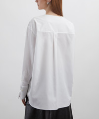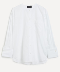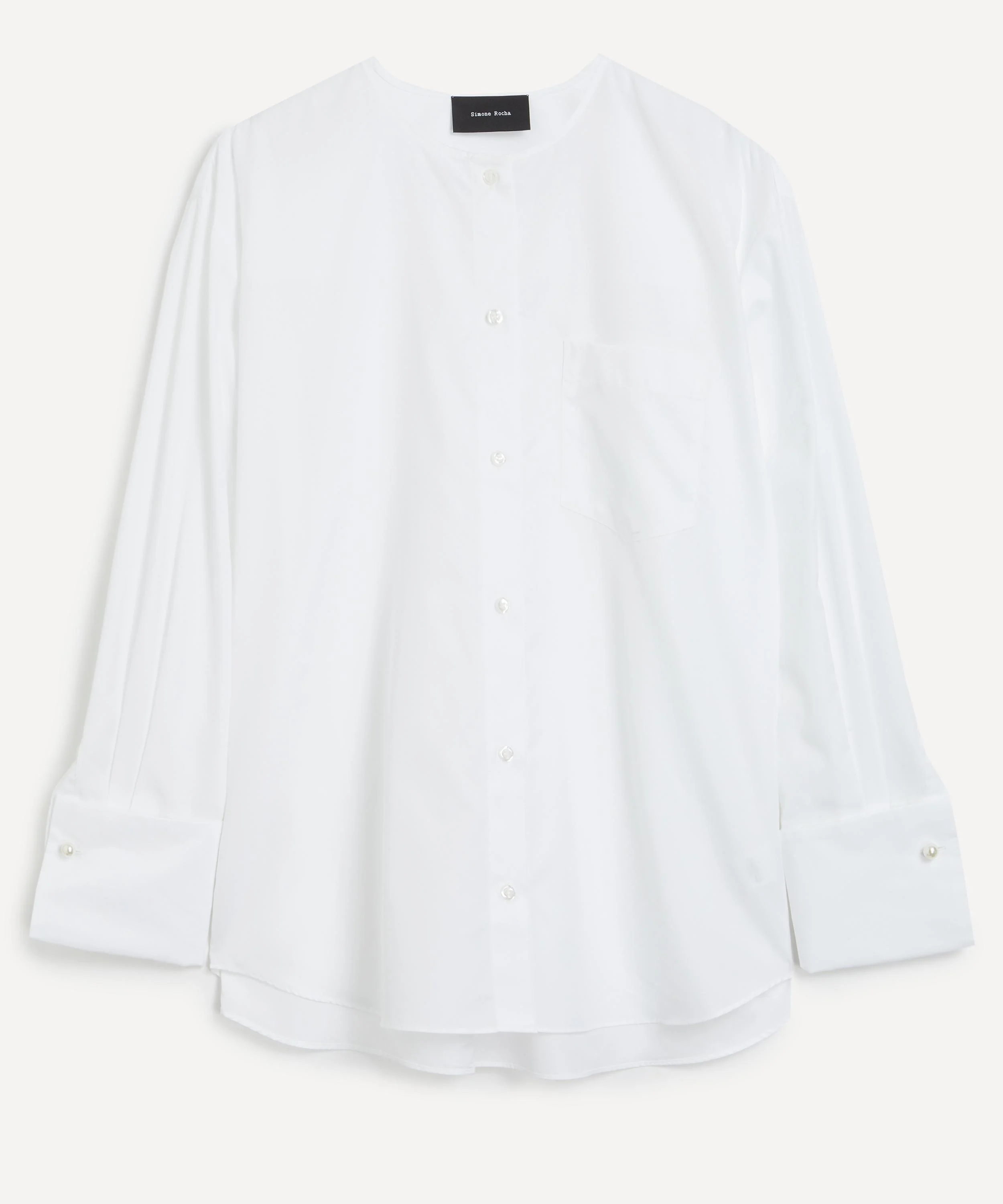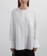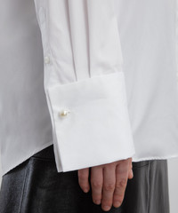 DETAILS Cotton poplin shirt Oversized fit Long sleeves Elongated French cuff detail Faux pearl button detail at cuff Band neckline SIZE & FIT Model is 175cm/5'9"; Chest: 77cm; Waist: 57cm; Hip: 87cm and wears a size S COMPOSITION & CARE 100% Cotton Dry clean