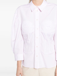 corset seam shirt Highlights - Light pink - Cotton - Poplin texture - Integrated corset seaming - Bracelet sleeve - Slim fit - Long sleeves - Straight hem Imported Composition Cotton 100% SIZE & FIT Model measurements Height 5 ft 9 in(1.76 m) Bust/Chest 31.49 in(80 cm) Hips 36.61 in(93 cm) Waist 24.4 in(62 cm) FittingInformation Designed for a slim fit that sits just away from the body offering a close yet comfortable fit The moulded cups offer shape and support Made from a midweight non-stretch fabric