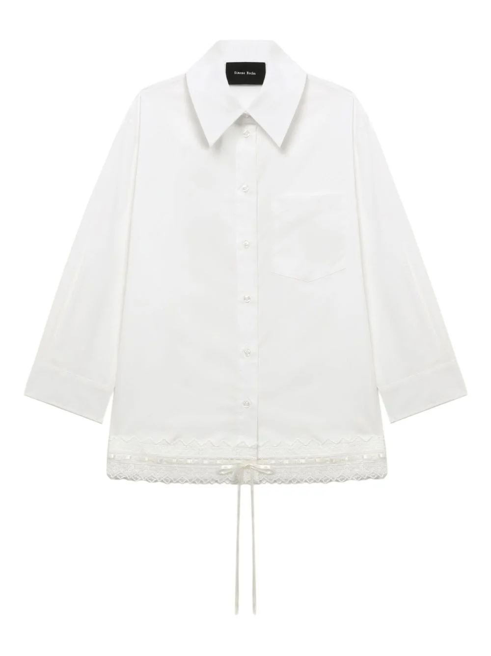 lace-trimmed pocket shirt Highlights - White - Three-quarter sleeves - Button fastening - Collared neckline - Lace trim - Chest pocket Imported Composition Fabric 100% Washing instructions Read Manufacturer Guidelines