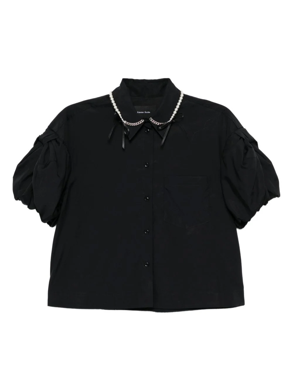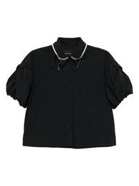 cotton shirt Highlights - Black - Front button fastening - Front patch pocket - Straight hem - Pearl chain on the neckline Imported Composition Cotton 100% SIZE & FIT Model measurements Height 5 ft 9 in(1.76 m) Bust/Chest 31.1 in(79 cm) Hips 35.03 in(89 cm) Waist 24.4 in(62 cm) FittingInformation Designed for a boxy fit, intended for a loose fit throughout Made from a midweight non-stretch fabric