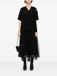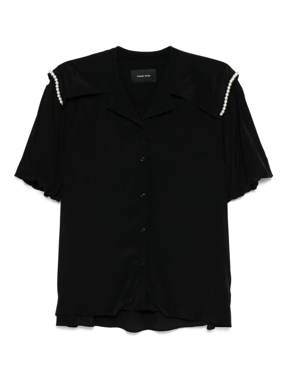 cropped sailor collar shirt Highlights - Black - Front button fastening - Short puff sleeves Imported Composition Acetate 73%, Silk 27% SIZE & FIT Model measurements Height 5 ft 10 in(1.78 m) Bust/Chest 29.92 in(76 cm) Hips 34.64 in(88 cm) Waist 24.8 in(63 cm) FittingInformation Designed to be unstructured, offering a loose fit throughout Made from a lightweight non-stretch fabric Washing instructions Dry Clean Only