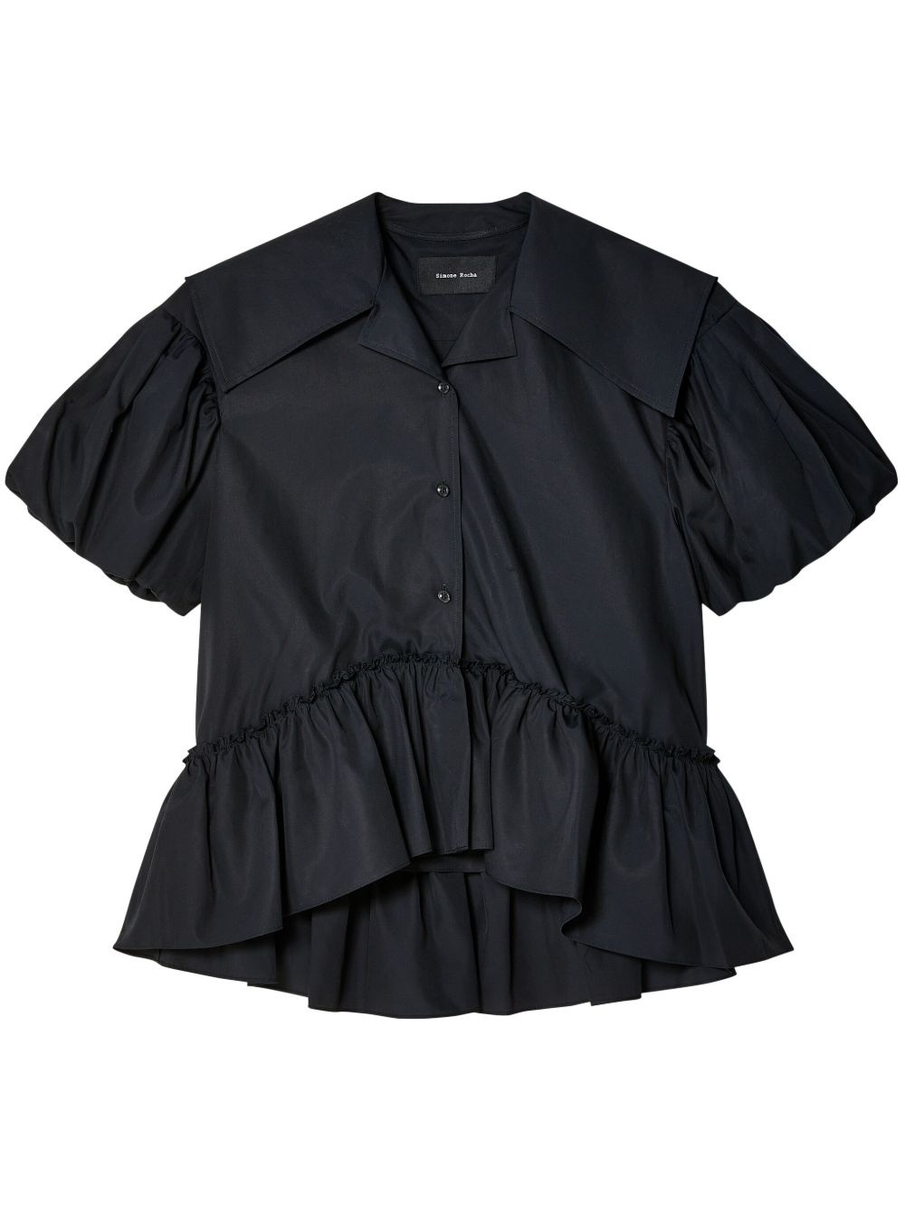 cropped sailor puff shirt Highlights - Black - Front button fastening - Short puff sleeves - Ruffle hem - Sailor collar Imported Composition Cotton 100%