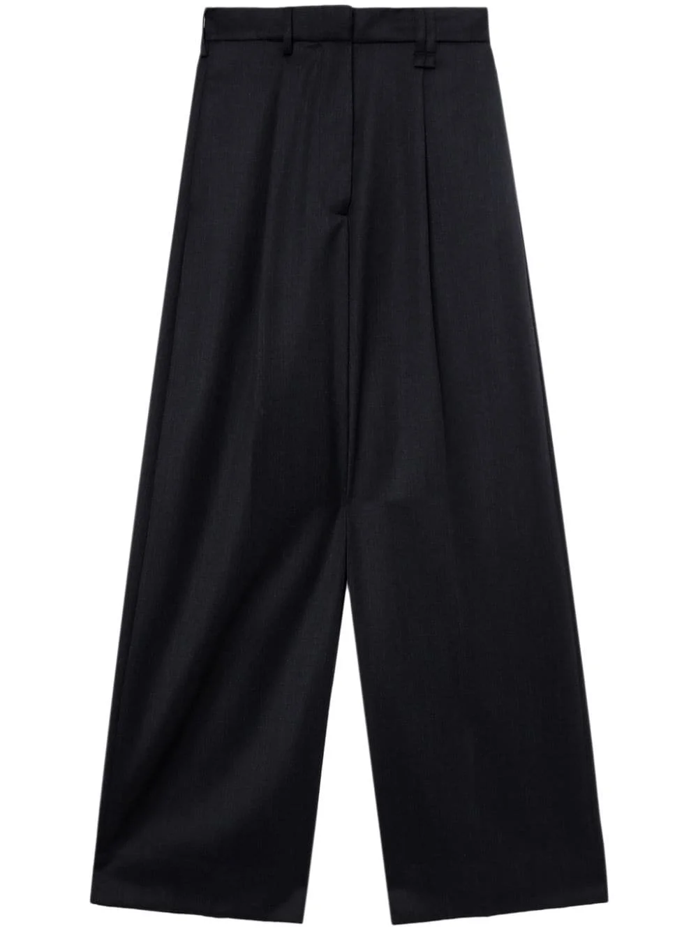 cropped tailored trousers Highlights - Dark grey - Virgin wool blend - Pleat detailing - Belt loops - Concealed front fastening - Two rear button-fastening pockets - Straight leg Imported Composition Polyester 55%, Virgin Wool 45%