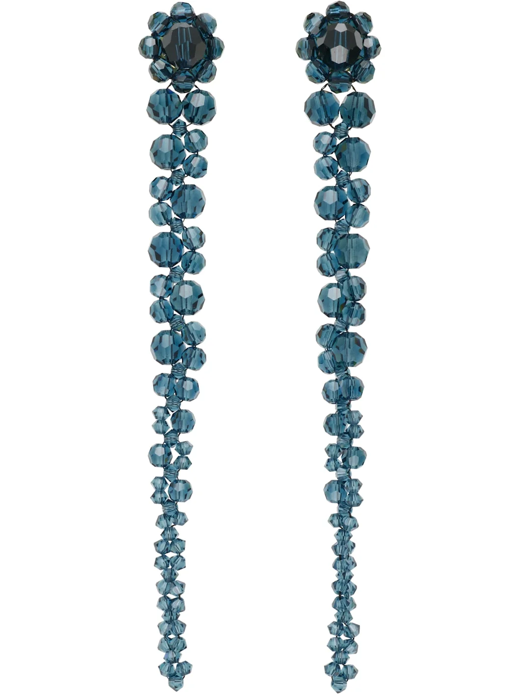 Pair of beaded glass drop earrings. · Post-stud fastening · Gold-tone brass hardware · H4.5" x W0.5" Supplier color: Indigo Brass, glass. Made in Portugal 252405F022000