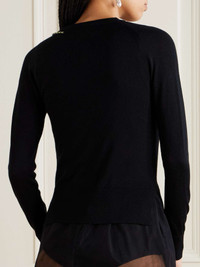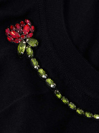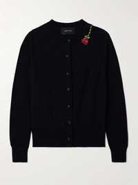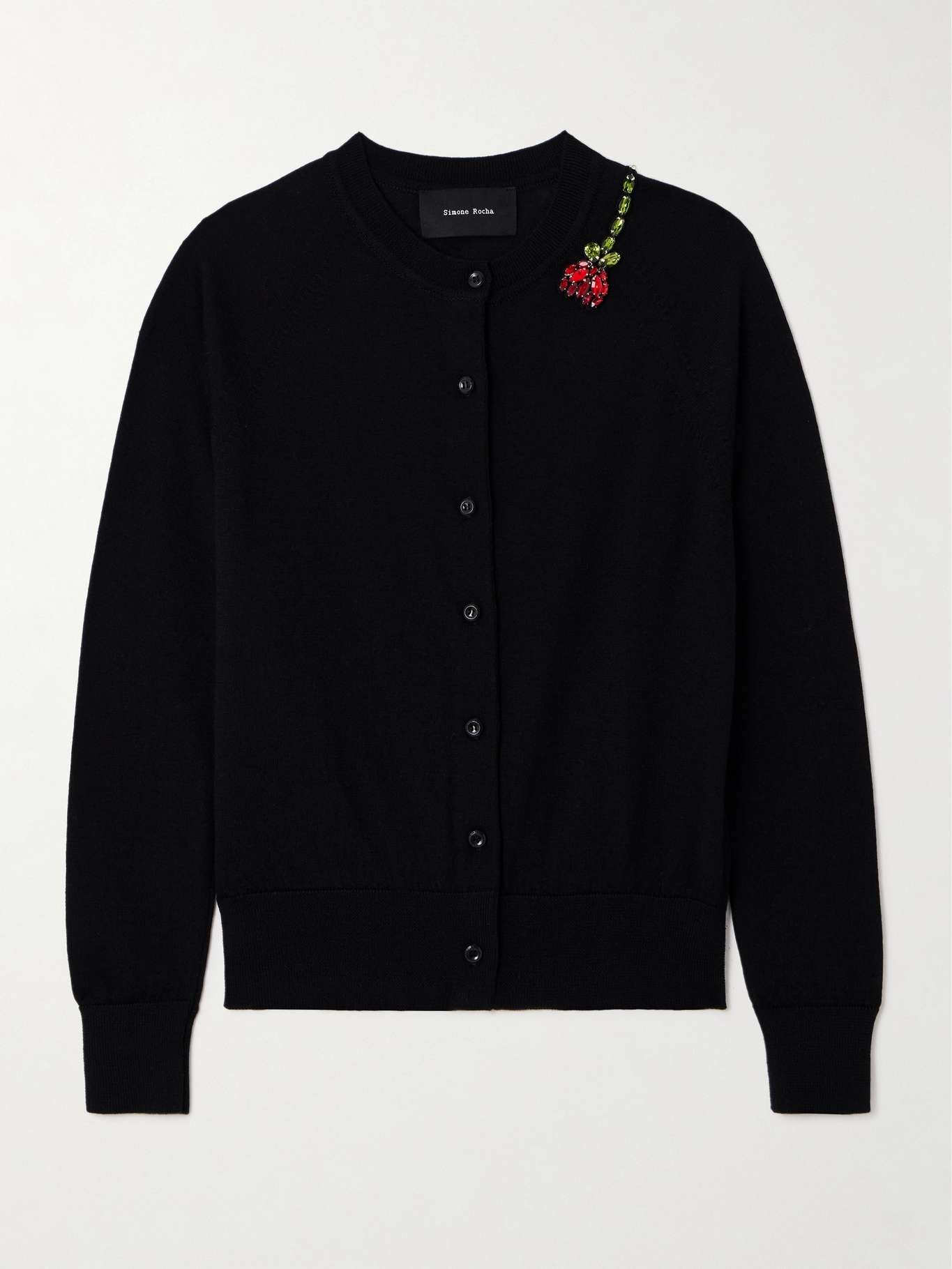 EDITORS'NOTES Simone Rocha's cardigan is embellished with a crystal flower along the shoulder - it's inspired by Pina Bausch's dance piece Nelken, which is performed on a stage strewn with 8,000 pink carnations and a key motif seen throughout the label's Spring '25 collection. It's made from wool and silk-blend and has ribbed trims. SIZE & FIT Model measurements: - Fits true to size, take your normal size - Designed for a slim fit - Lightweight knit - Model is 177cm/ 5'10" and is wearing a size Small - Bust: 85cm/ 33.5" - Waist: 65cm/ 25.5" - Hip: 91cm/ 36" DETAILS & CARE - Black wool and silk-blend - Button fastenings through front - 75% wool, 25% silk - Hand wash