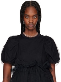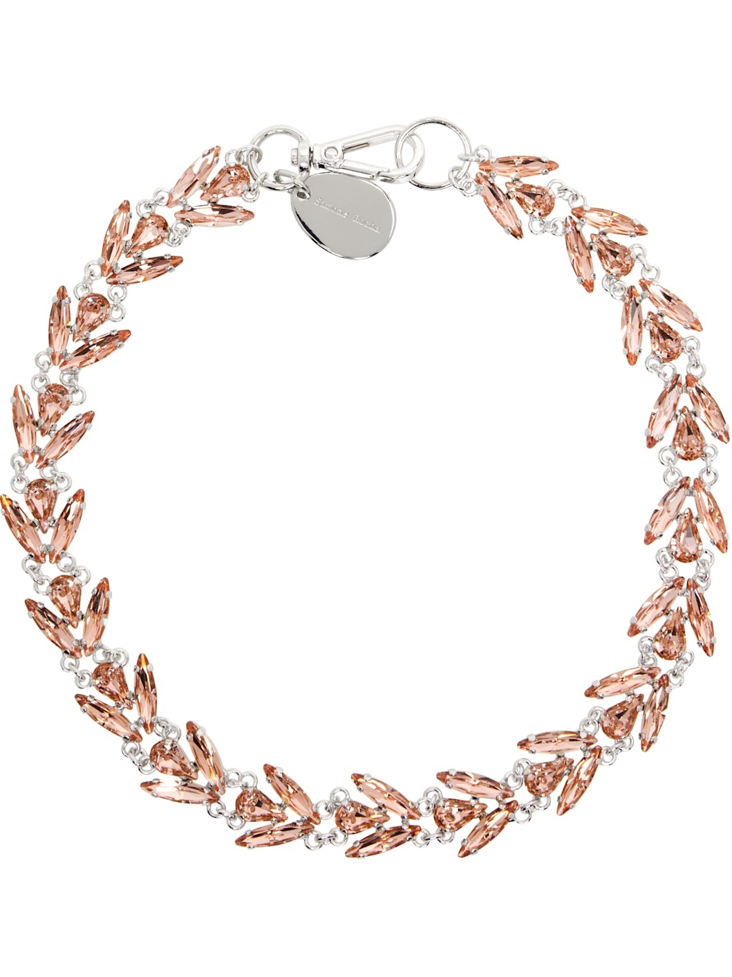 Cup chain necklace in silver-tone brass. Glass crystals in pink throughout. - Logo plaque at lanyard-clasp fastening - L15 Supplier color: Rose