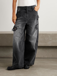 Crystal-embellished distressed wide-leg jeans Black