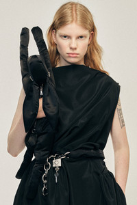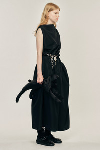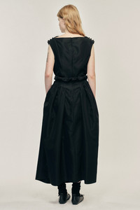 The silhouette of this taffeta dress is relaxed yet structured, the gathered waist detail adds volume to the dress. It features architectural-like draping across the bodice that creates a relaxed fit above the waist. Product Details Taffeta dress - From Look 20 on the runway - Exaggerated hip detail - Rouleau button placket - Draped detail at front Composition: 71% Acetate 29% Polyester SKU: 7415 0469 BLACK Size & Fit Model is wearing size 8.