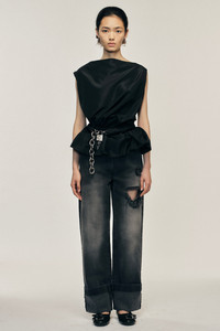 This sleeveless taffeta top features a boat neckline and an asymmetrical draped design. It's dramatic peplum detail at the waist creates volume and shape. The model is wearing this style with the Embellished Straight Leg Jeans. Product Details Taffeta gathered top - Draped detail at front - Peplum detail at side - Rouleau button placket - Open neck - Zip closure Composition: 71% Acetate 29% Polyester Lining: 60% Acetate 40% Viscose SKU: 5398 0469 BLACK Size & Fit Model is wearing size 8.