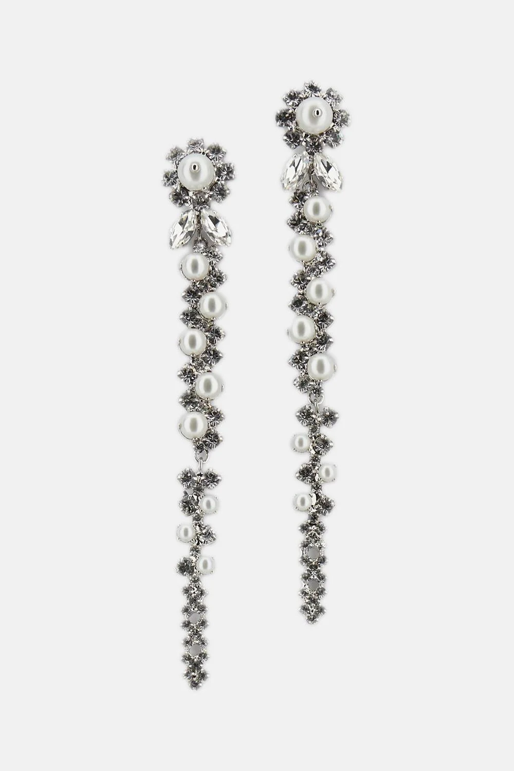 Drop earrings with crystals and beads Upper part of the earring shaped like a flower Crystals of decreasing size cascading down the stem. Details and Care Color: Argento Composition: 100% BRASS Made in: Italia Sku: ERG12SC0907CRYSTAL