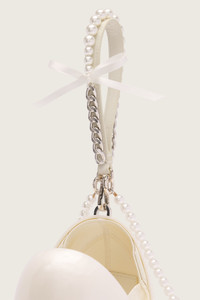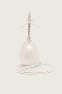The classic pearl egg bag is adorned with this season's pearl and chain detail at the leather wristlet. It also has a detachable pearl strap for an additional signature touch. Product Details Perspex egg bag - Seasonal embellishment - Leather wristlet - Pearl crossbody strap - Magnetic closure - Dimensions: 12.6cm x 10.8cm x 11cm (Excluding strap) Composition: Outer: 100% Polycarbonate Lining: 50% Viscose 50% Rayon Strap: 100% Polycarbonate Wrist Strap: 100% Leather (Excluding Embellishment) SKU: BAG110ECBOW 0773 PEARL/PEARL2