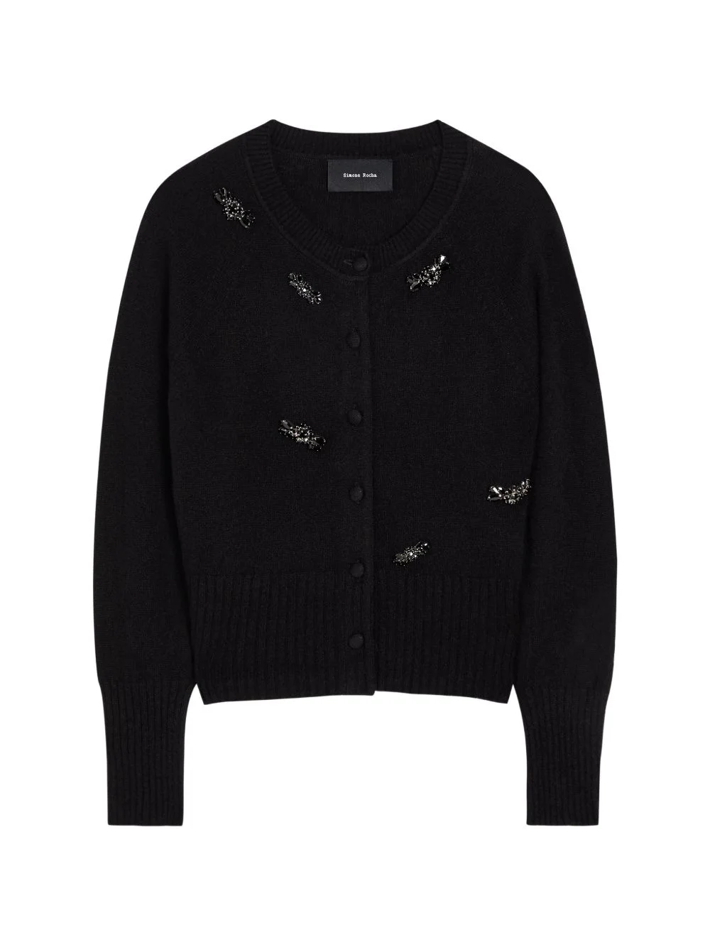 embellished button-fastening cardigan Highlights - Black - Embellishment - Button fastening - Round neck - Long sleeves - Ribbed hem Imported Composition Fabric 100% Washing instructions Read Manufacturer Guidelines