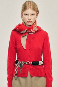 A subtly cropped cardigan knit from a new cashmere yarn, seasonal red crystal cluster embellishments are featured at the front. The model is wearing this style with the Multi Slit Skirt. Product Details Cashmere cardigan - Signature embellishment - Button closure Composition: 100% Cashmere (Excluding Embellishment) SKU: COMK3B 0667 BLOOD RED/RED Size & Fit Model is wearing size Small.
