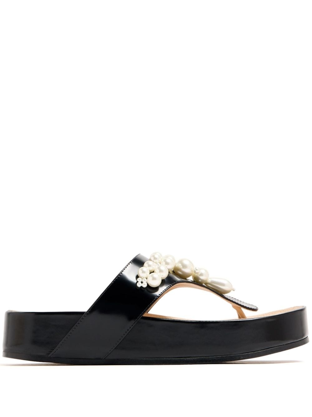 faux-pearl embellished leather sandals Highlights - Black - Leather - Smooth grain - Faux-pearl embellishment - Round open toe - Thong strap - Slip-on style - Branded leather insole - Flatform sole Imported Composition Sole: Leather 100% Outer: Leather 100% Lining: Leather 100% SIZE & FIT Measurement HEEL 1.57 in(4 cm)
