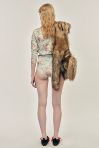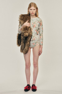 A pair of knit briefs in a technical yarn, it features a seasonal floral print. The model is wearing this style with the Shrunken Floral Knit Cardigan. Product Details Printed floral knit pants - From Look 43 on the runway - High waisted Composition: 70% Viscose 30% Stretch Polyester SKU: EMK3P 0668 BABY BOUQUET Size & Fit Model is wearing size Small.