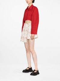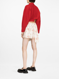 off-white ditsy floral print asymmetric design inner shorts pleat detailing high-waisted belt loops straight hem two rear flap pockets Size & Fit Model Measurements: Height: 1.78 m Bust/Chest: 78.0 cm Hips: 88.0 cm Waist: 59.0 cm Model wears size 8 Fabric and Care Designer Style ID: 40601004 Designer Colour: WREATH Composition: Outer: Polyester 100%; Lining: Acetate 60%, Cupro 40% Washing instructions: Dry Clean Only Made in Portugal