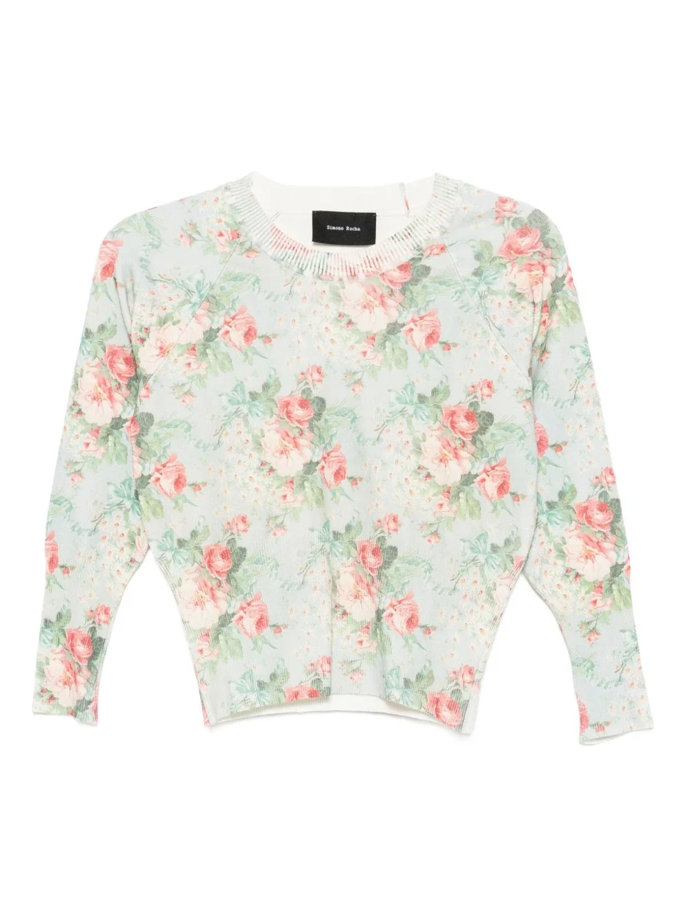 floral shrunken top Highlights - Light blue - Long sleeves - Ribbed cuffs and hem Imported Composition Viscose 70%, Polyester 30% SIZE & FIT Model measurements Height 5 ft 10 in(1.77 m) Bust/Chest 30.31 in(77 cm) Hips 36.22 in(92 cm) Waist 24.8 in(63 cm) FittingInformation Designed for a slim fit that sits just away from the body offering a close yet comfortable fit Made with a lightweight knit, this piece offers some stretch Washing instructions Hand Wash