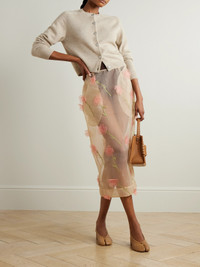 Simone Rocha's Spring '25 collection is inspired by the beauty of carnations. Made from sheer organza, this skirt is appliqued all-over with the elegant bloom and has tonal embroidery to give it a tactile finish. Underpin yours with a tonal slip.