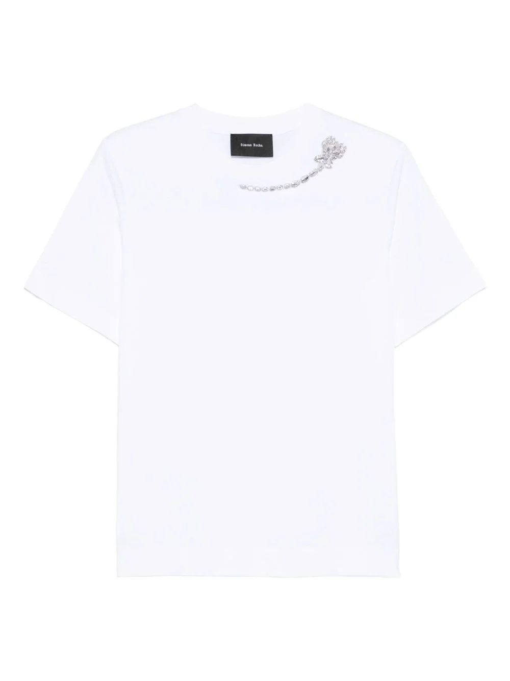 cotton T-shirt Highlights - White - Round neck - Short sleeves - Floral applique Imported Composition Cotton 100% SIZE & FIT FittingInformation Designed for a slim fit that sits just away from the body offering a close yet comfortable fit Made from a midweight non-stretch fabric, this piece offers minimal elasticity when worn
