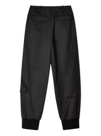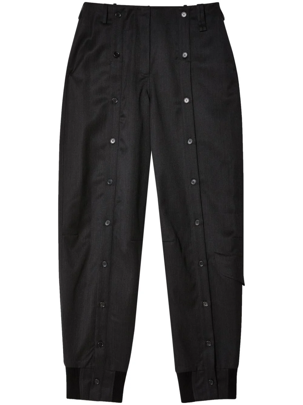 button placket straight-leg trousers Highlights - Black - Front button placket - Belt loops - Elasticated ankles - Two side slit pockets - Side flap pocket - Two rear flap pockets - High-rise Imported Composition Polyester 55%, Virgin Wool 45%