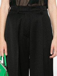 pleated wide-leg trousers Highlights - Black - Interlock weave - Belt loops - Two side inset pockets - Pleat detailing - Pressed crease - Two rear button-fastening jetted pockets - Wide leg - Concealed front button, hook and zip fastening Imported Composition Lining: Acetate 60%, Cupro 40% Outer: Polyester 55%, Virgin Wool 45% SIZE & FIT Model measurements Height 5 ft 10 in(1.77 m) Bust/Chest 33.85 in(86 cm) Hips 37 in(94 cm) Waist 26.37 in(67 cm) FittingInformation Designed with a wide-leg cut, these trousers allow for a close fit at the waist and offer a loose and roomy fit over the leg Made from a midweight non-stretch fabric This piece fits true to size – take your usual size