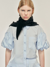 Graphic Logo Knit Neckerchief with Embroidery in Black/Charcoal/Jet from Simone Rocha Highlights - black - logo neck scarf - merino and cashmere Made in Portugal Designer ID: KIMK3WDB 669 Colour ID: Black/Charcoal/Jet Materials 90% Merino Wool 10% Cashmere (Excluding Embellishment)