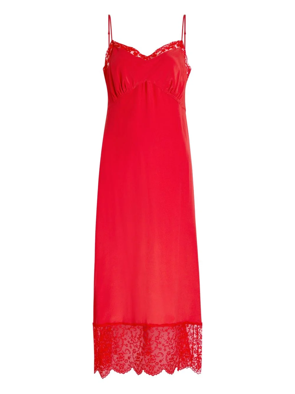 lace-trim midi slip dress Highlights - Red - Lace trim - Spaghetti straps - Scalloped edge - Gathered bust Imported Composition Nylon 100%, Acetate 73%, Silk 27% Washing instructions Dry Clean Only