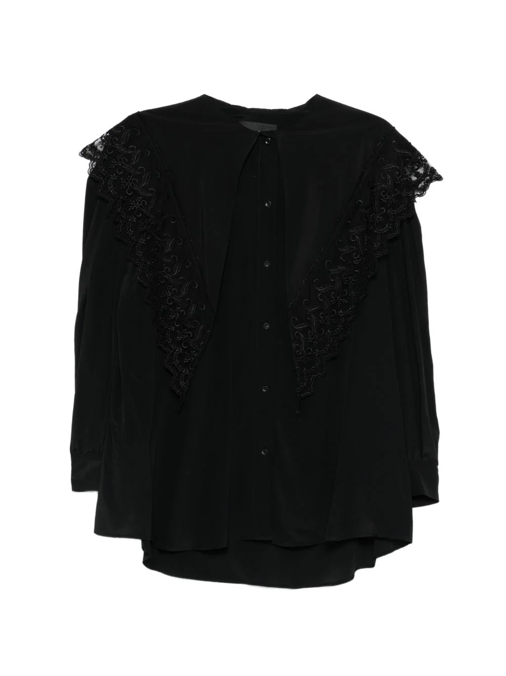 lace-trim shirt Highlights - Black - Lace detailing - Button fastening - Long sleeves - Collar Imported Composition Polyamide 100%, Polyester 100%, Acetate 73%, Silk 27% Washing instructions Read Manufacturer Guidelines