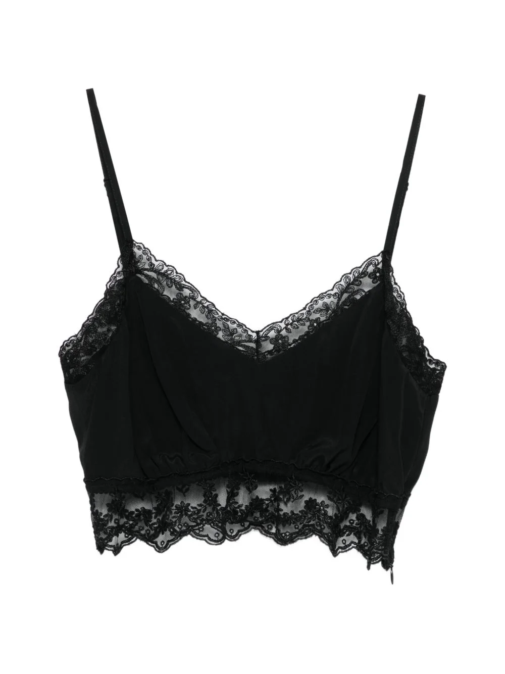 lace-trim top Highlights - Black - Lace trim - Spaghetti straps Imported Composition Outer: Acetate 73%, Silk 27% Washing instructions Dry Clean Only
