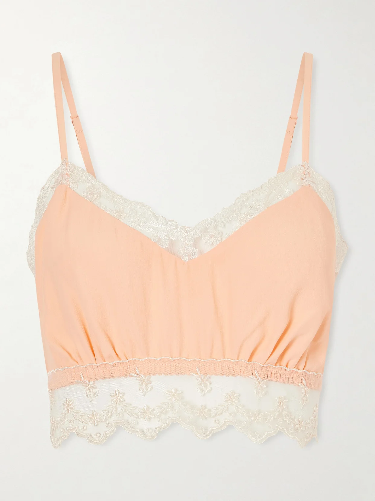 Lace-trimmed Crepe De Chine Bralette