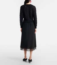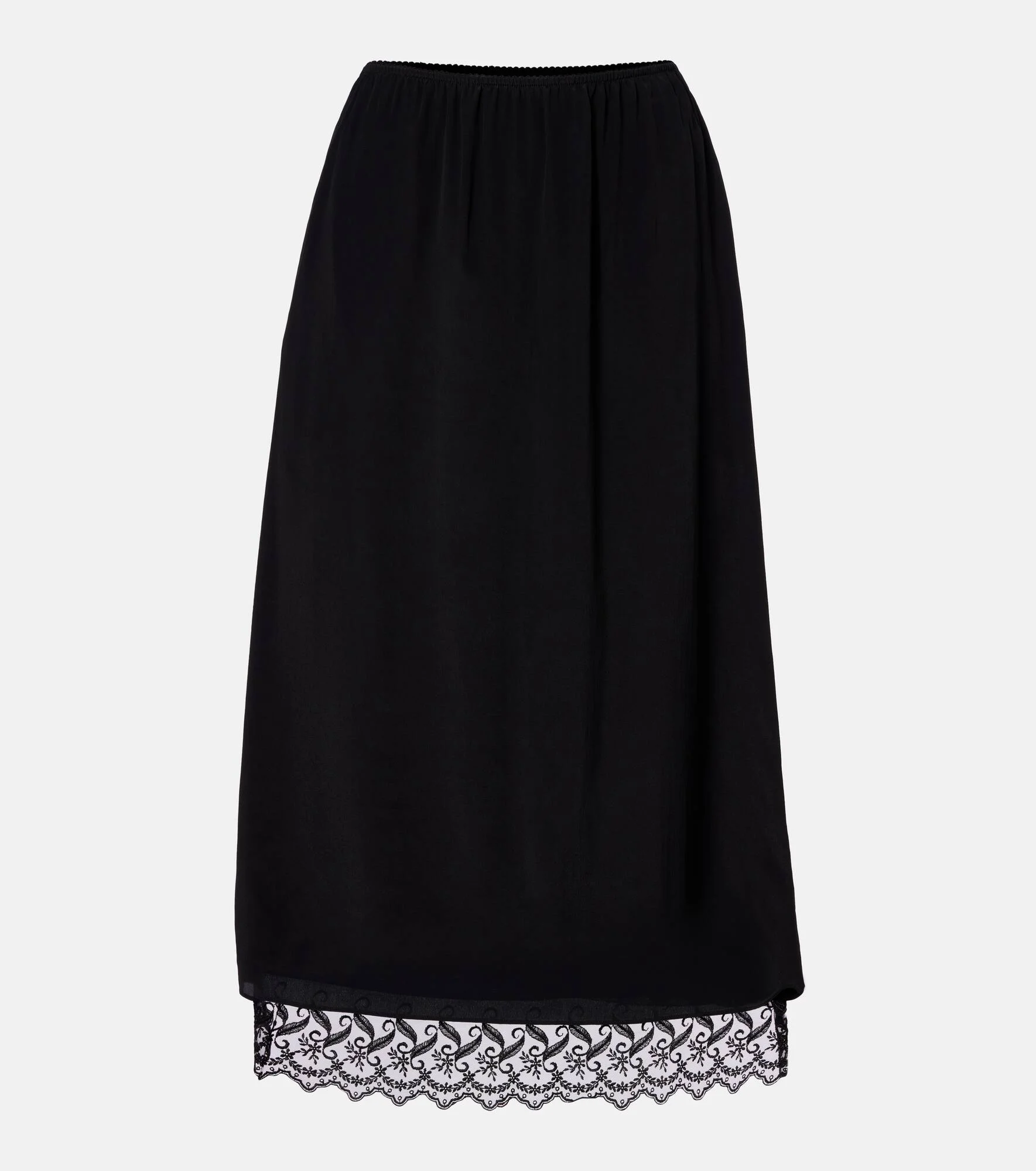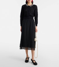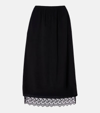 Lace-trimmed crêpe de chine midi skirt