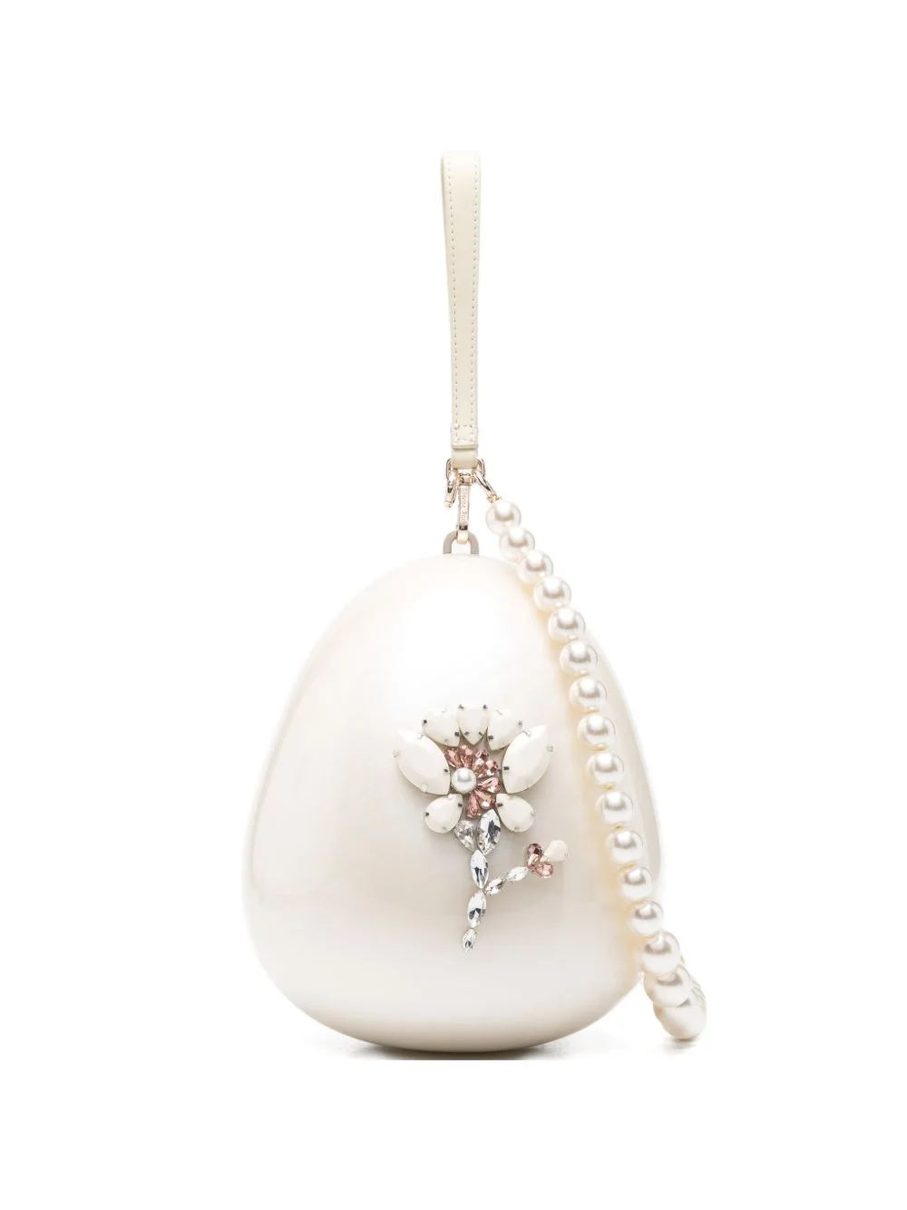 large pearl egg floral-beaded cross body bag Highlights - White - Floral beaded - Egg shape - Top handle - This piece comes complete with a protective dust bag. Imported Composition Outer: Acrylic 100%, Calf Leather 100% Lining: Viscose 50%, Rayon 50% SIZE & FIT Measurement DEPTH 6.69 in(17 cm) HEIGHT 8.66 in(22 cm) WIDTH 6.69 in(17 cm) HANDLE 7.08 in(18 cm) STRAP 43.3 in(110 cm)