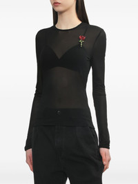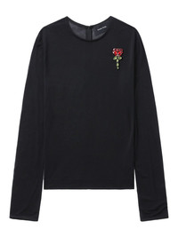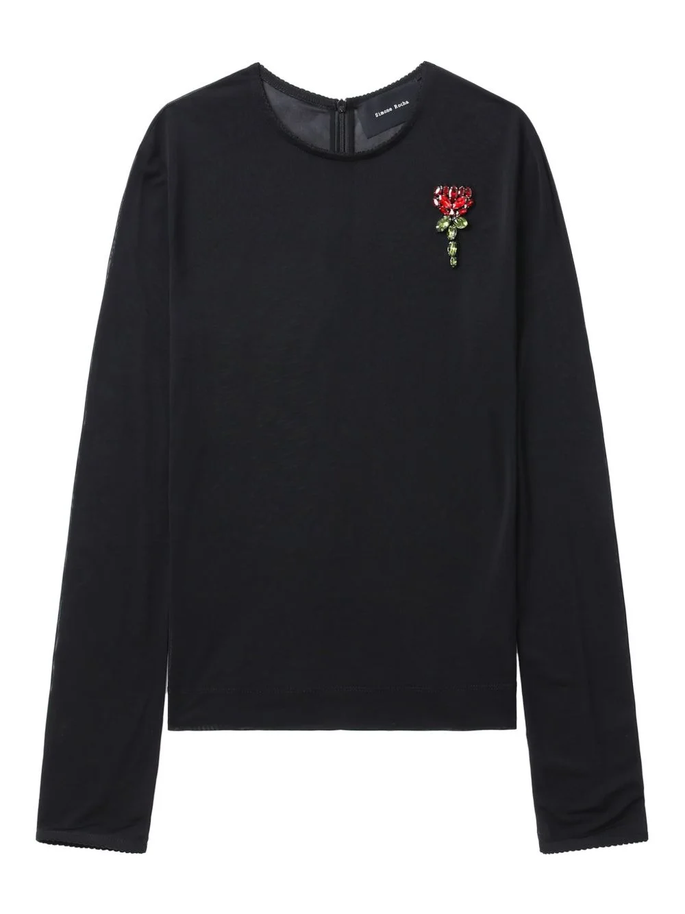 long sleeve t-shirt Highlights - Black - Rear zip fastening - Crew neck - Floral applique - Semi-sheer construction Imported Composition Viscose 100% Washing instructions Read Manufacturer Guidelines