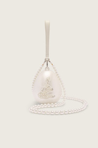 Adorning the front of the brand cult pearl egg bag is an intricate hare motif made of pearl and crystals. Attached at the top of the bag is a long strand of pearls that function as a crossbody strap. Product Details Perspex egg bag - Seasonal embellishment - Leather wristlet - Pearl crossbody strap - Magnetic closure - Dimensions: 12.6cm x 10.8cm x 11cm (Excluding strap) Composition: Outer: 100% Polycarbonate Lining: 50% Viscose 50% Rayon Strap: 100% Polycarbonate Wrist Strap: 100% Leather (Excluding Embellishment) SKU: BAG110ECB 0773 PEARL/PEARL/CLEAR3