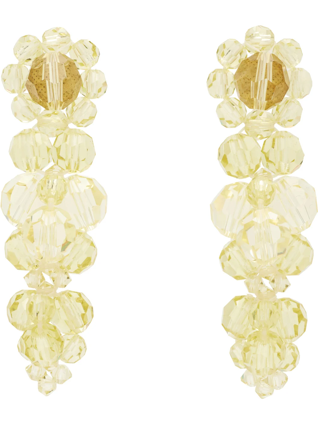 Pair of drop earrings in gold-tone brass. · Beaded glass in yellow at drop · Post-stud fastening · H2" x W0.5" Supplier color: Lemon Brass, glass. Made in Portugal 261405F022005
