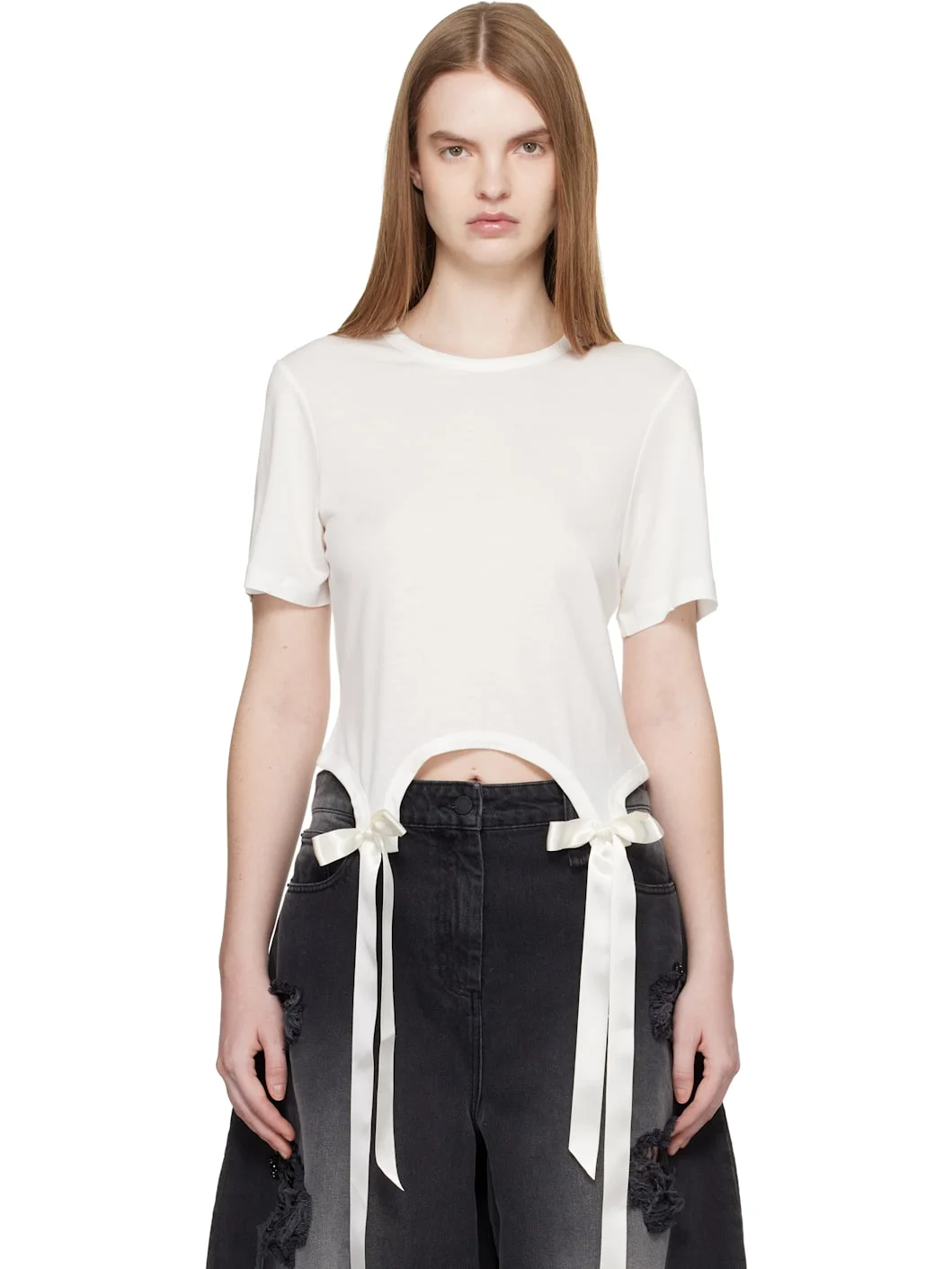 Lyocell jersey T-shirt. · Crewneck · Bow accents at cropped hem Supplier color: Ivory Body: 100% lyocell. Trim: 100% polyester. Made in Portugal 261405F110015