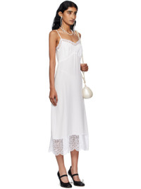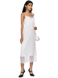 Semi-sheer crepe de chine midi dress. · Lace trim at sweetheart neck and hem · Gathering at cups · Adjustable spaghetti straps Supplier color: Ivory Body: 73% acetate, 27% silk. Trim 1: 100% polyamide. Trim 2: 100% viscose. Made in Portugal 252405F054014