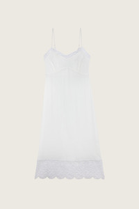 A slip dress made in a silk mix crepe de chine, a classic style from the brand. Featuring a seasonal floral embroidered lace trim and adjustable straps, the perfect layering piece to be worn under our tulle dresses. Product Details Silk mix crepe de chine slip dress - Sweetheart neckline - Floral embroidered lace trim - Adjustable shoulder straps - Gathered bust Composition: 73% Acetate 27% Silk Trim: 100% Polyamide Thread: 100% Viscose SKU: 7210 0514 IVORY