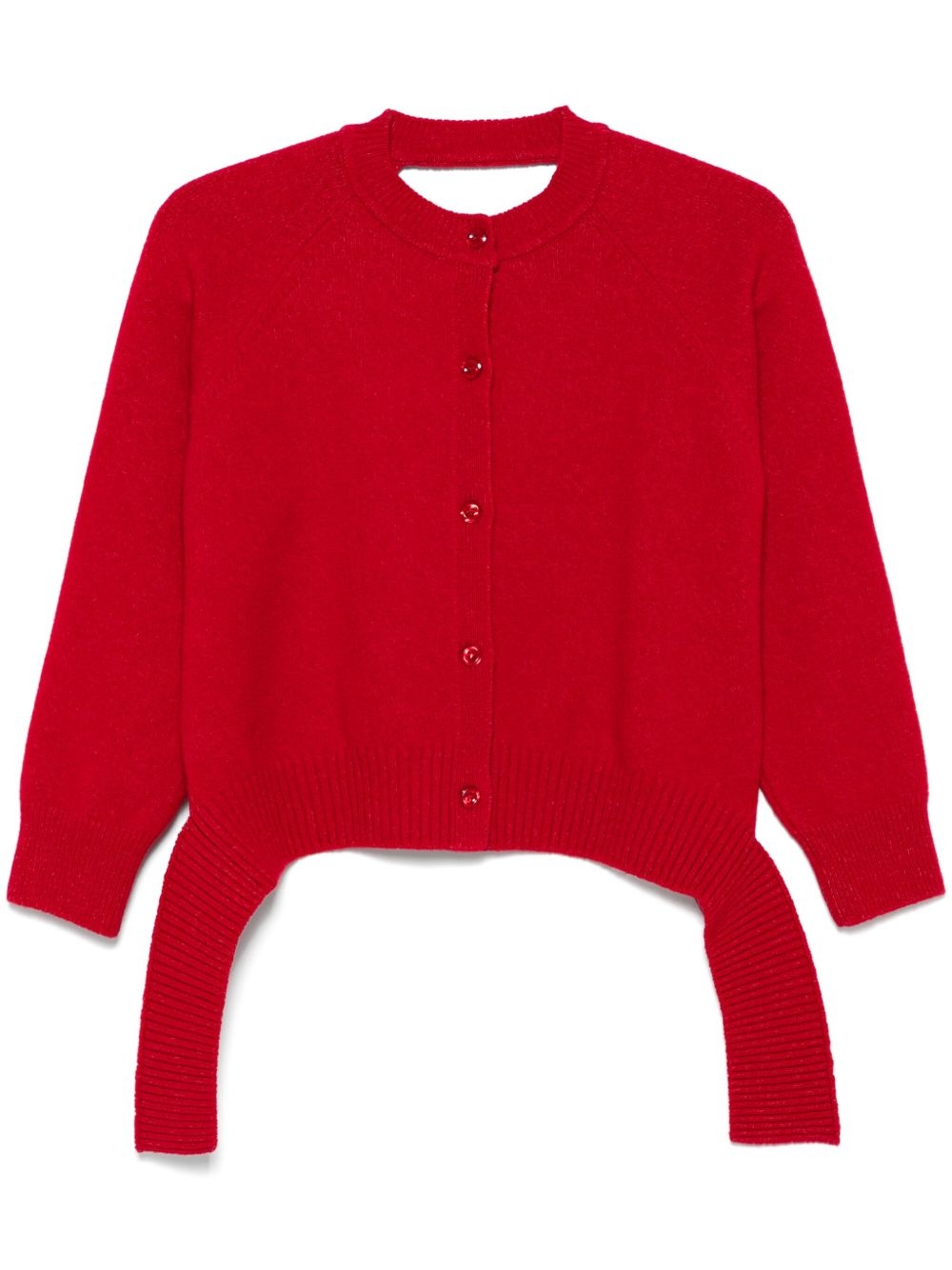 open-back cardigan Highlights - Crimson - Front button fastening - Ribbed cuffs and hem - Crew neck - Draped detailing Imported Composition Virgin Wool 93%, Polyamide 6%, Elastane 1% SIZE & FIT Model measurements Height 5 ft 10 in(1.78 m) Bust/Chest 30.7 in(78 cm) Hips 36.22 in(92 cm) Waist 23.22 in(59 cm) FittingInformation Designed for a relaxed fit, this piece allows for comfort and movement when worn Made with a midweight knit, this piece offers some stretch