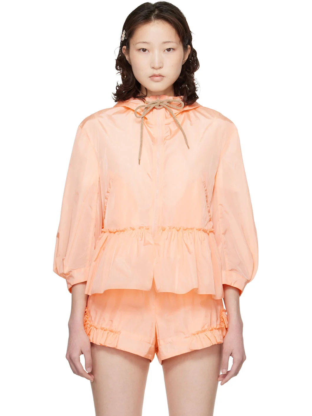 Nylon taffeta jacket. · Drawstring at hood · Stand collar · Two-way zip closure · Welt pockets at front · Ruffled trim at peplum hem · Pleats at cuffs Supplier color: Clementine/Taupe 100% polyamide. Made in Portugal 261405F063001