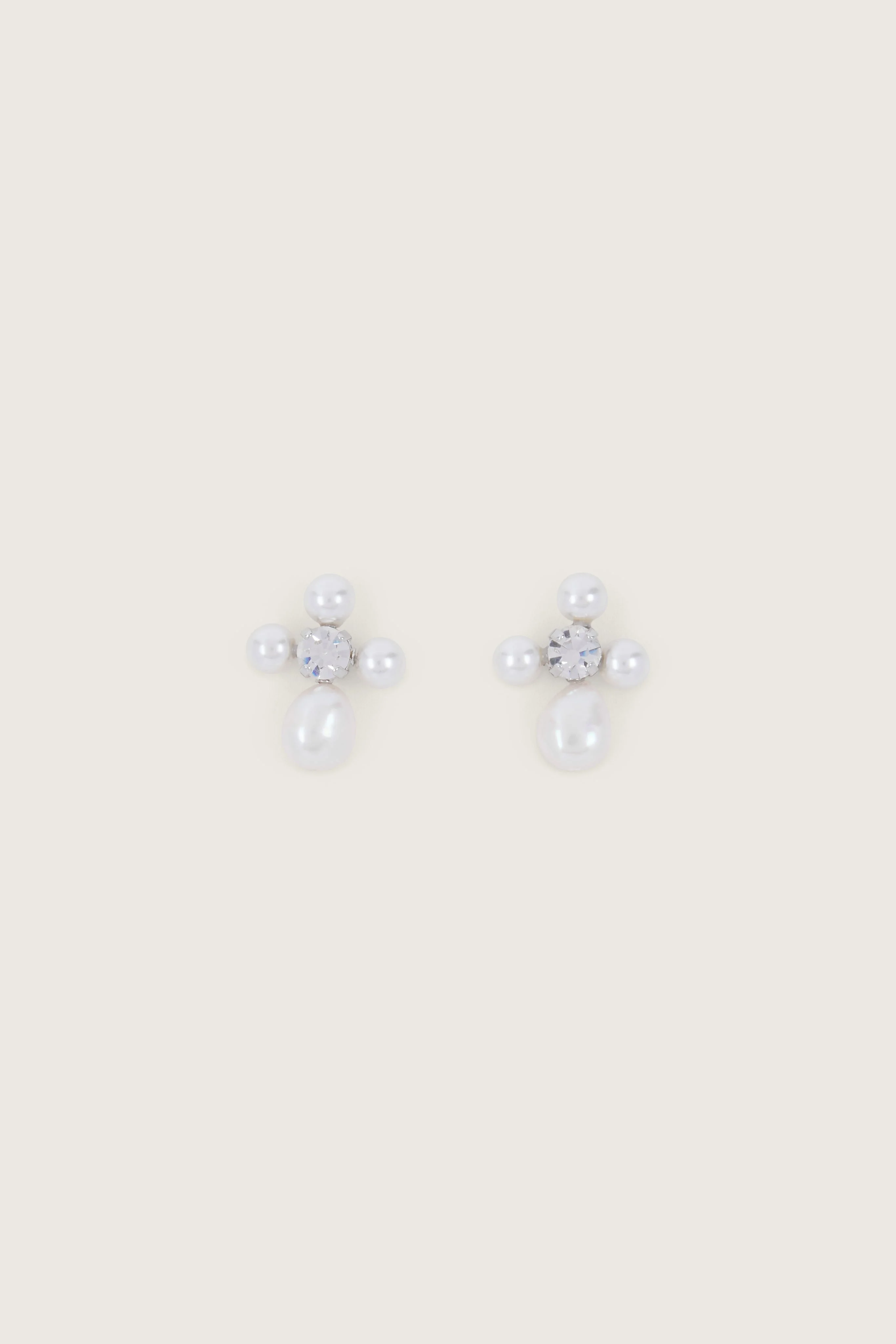 A stud earring comprised of baroque pearls with a petite crystal in the centre, perfect for everyday. Due to the nature of the material, no piece is exactly alike. Product Details Baroque pearl and crystal stud earrings - Crystal detail - Post stud fastening Composition: 75% Freshwater Pearl 5% Glass Crystal 20% Brass SKU: ERG535 0913 PEARL/CRYSTAL